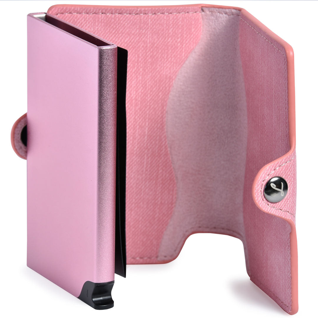Con su botón eyector, despliegas tus tarjetas al instante. No más búsquedas eternas ni billeteras desordenadas.